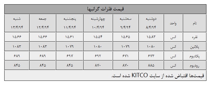 در میان این فلزات پلاتین و پلادیوم روند صعودی به خود گرفتند اما رودیوم 4.51 درصد کاهش قیمت داشته است.
