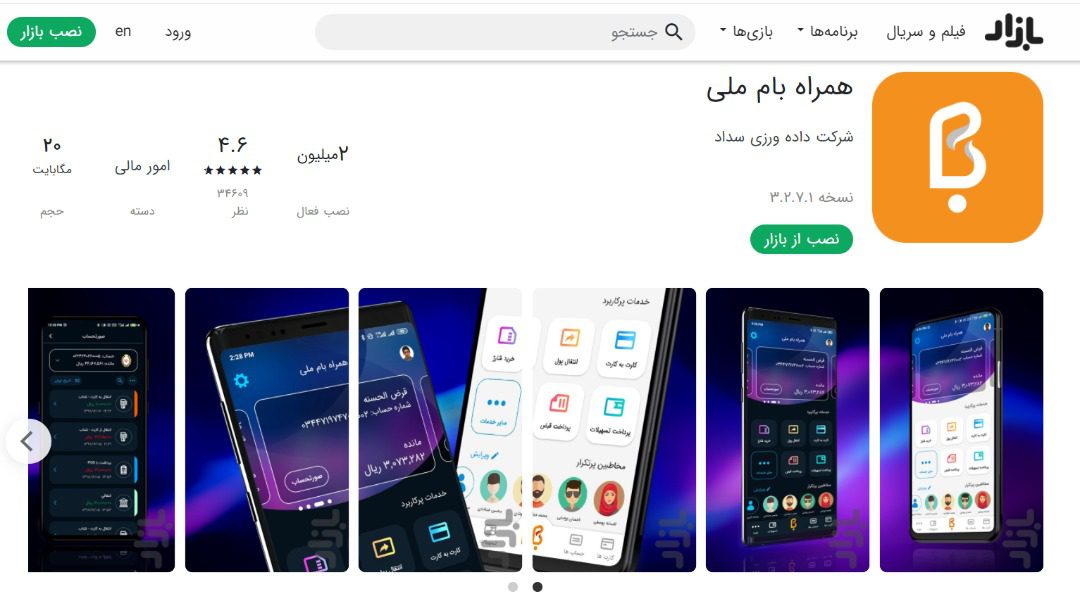 همراه بام بانک ملی امتیازآورترین اپلیکیشن بانکی کافه بازار شد