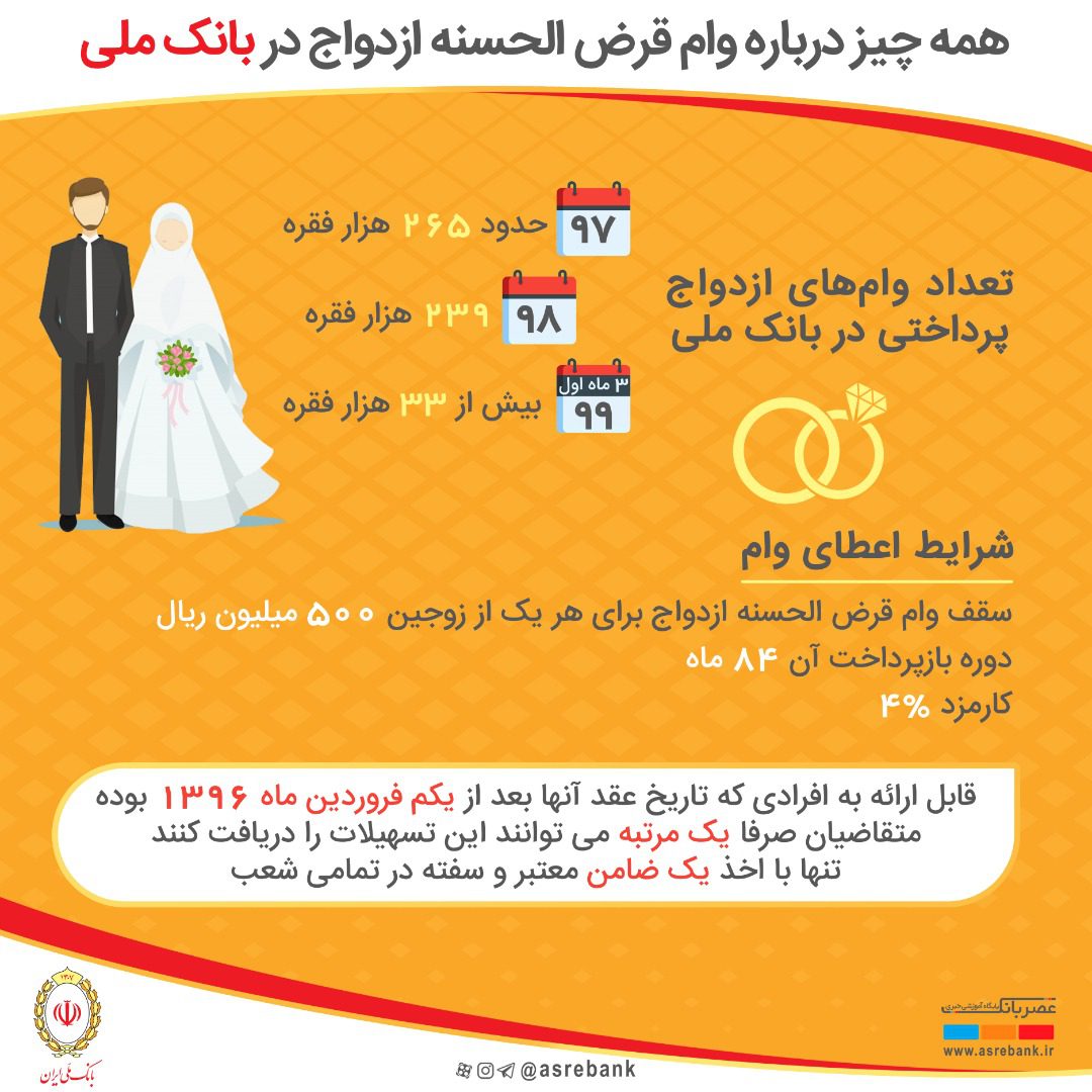 اینفوگرافیک / همه چیز درباره وام قرض‌الحسنه ازدواج در بانک ملی