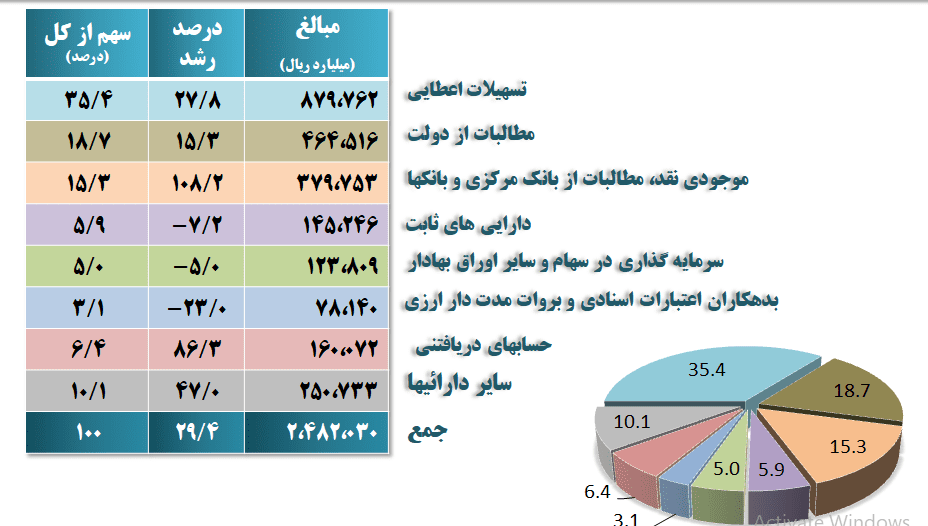 در شکل زیر ترکیب مصارف بانک با جزئیات آمده است: