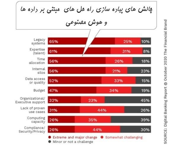 امروزه تقریباً همه بانک‌ها و موسسات مالی از اهمیت داده‌ها و هوش مصنوعی برای پیشبرد آینده تجارب مشتری درک خوبی دارند و اکثر آنها در تلاشند تا استراتژی روشنی برای استفاده از داده‌ها و تجزیه‌وتحلیل پیشرفته بسازند. این در حالی است که بیشترین استفاده از فناوری‌های هوش مصنوعی برای پشتیبانی از ریسک و کشف تقلب به کار گرفته می‌شود و تقریباً هیچ یک در استفاده از ابزارهای مشابه برای ارائه تعامل بهتر مشتری در مقیاس وسیع سرمایه‌گذاری نکرده‌اند.