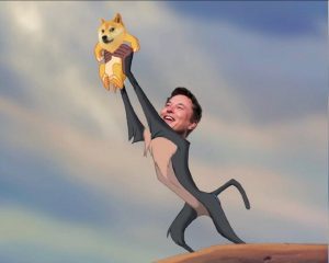 یکی از میم‌ها یا شوخی‌های شبکه‌های اجتماعی در رابطه با ایلان ماسک و دوج‌کوین که از کارتون «شیرشاه» برگرفته شده است.