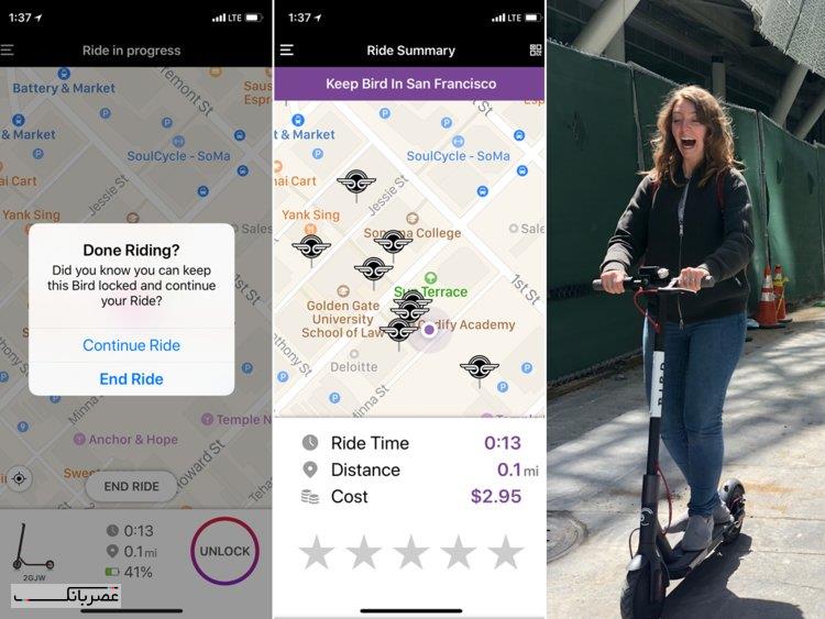 عصر بانک؛کرایه اسکوترهای برقی برای فعالیتهای تفریحی و نیز جابهجایی در مسیرهای کوتاه طرفداران زیادی دارد و به نظر میرسد این روش در آینده بهعنوان یک روش حمل و نقل محبوب در شهرهای پرازدحام و شلوغ مورد توجه قرار بگیرد. انتظار میرود اوبر قبل از پایان سال جاری میلادی با شرکت Bird در این زمینه به توافق برسد و گفته میشود مذاکرات دوطرف پیشرفت زیادی داشته است. پیش از این فروش این شرکت به هر مجموعه یا شرکت دیگری تکذیب شده بود ولی اخبار منتشر شده عکس این موضوع را ثابت میکند.