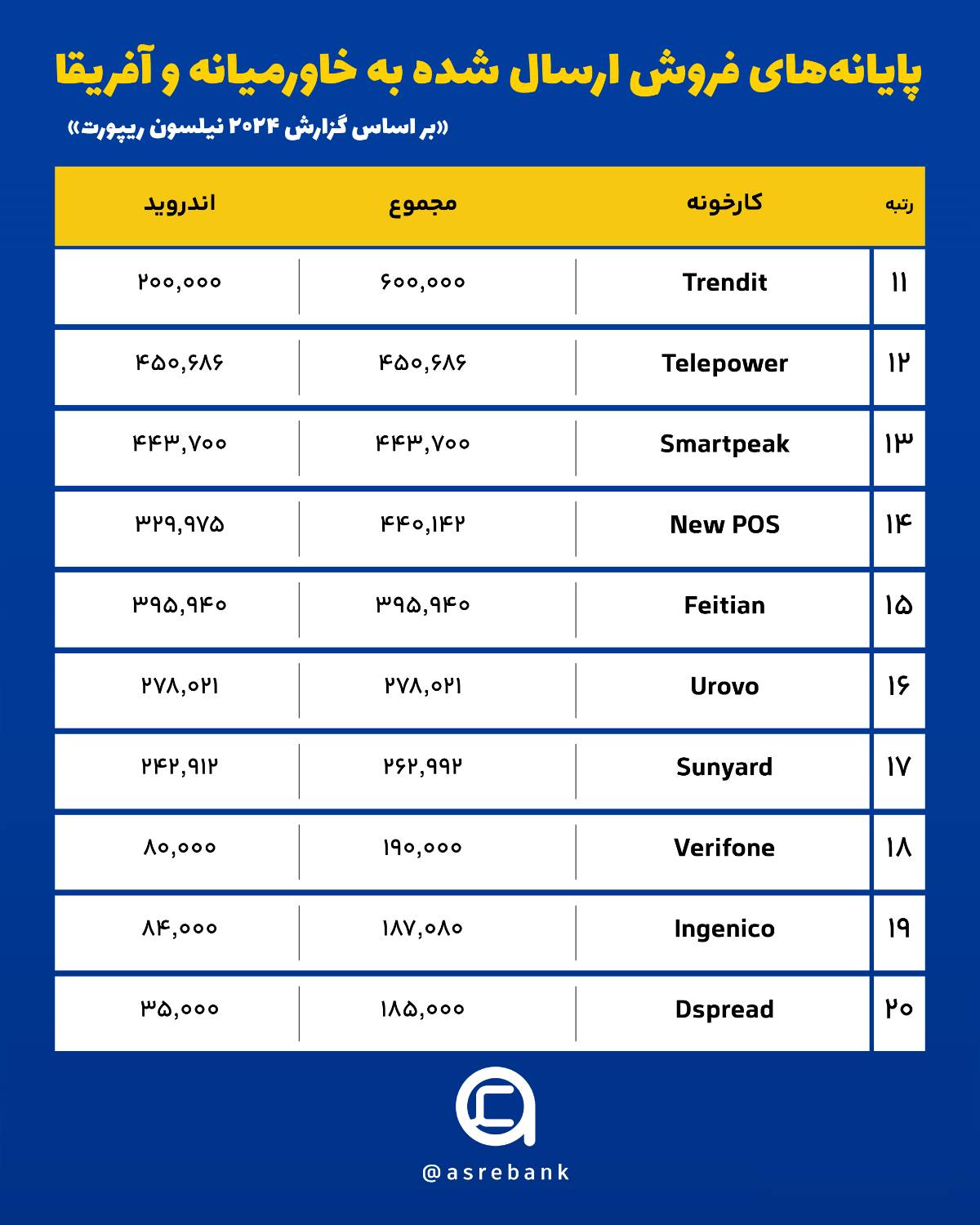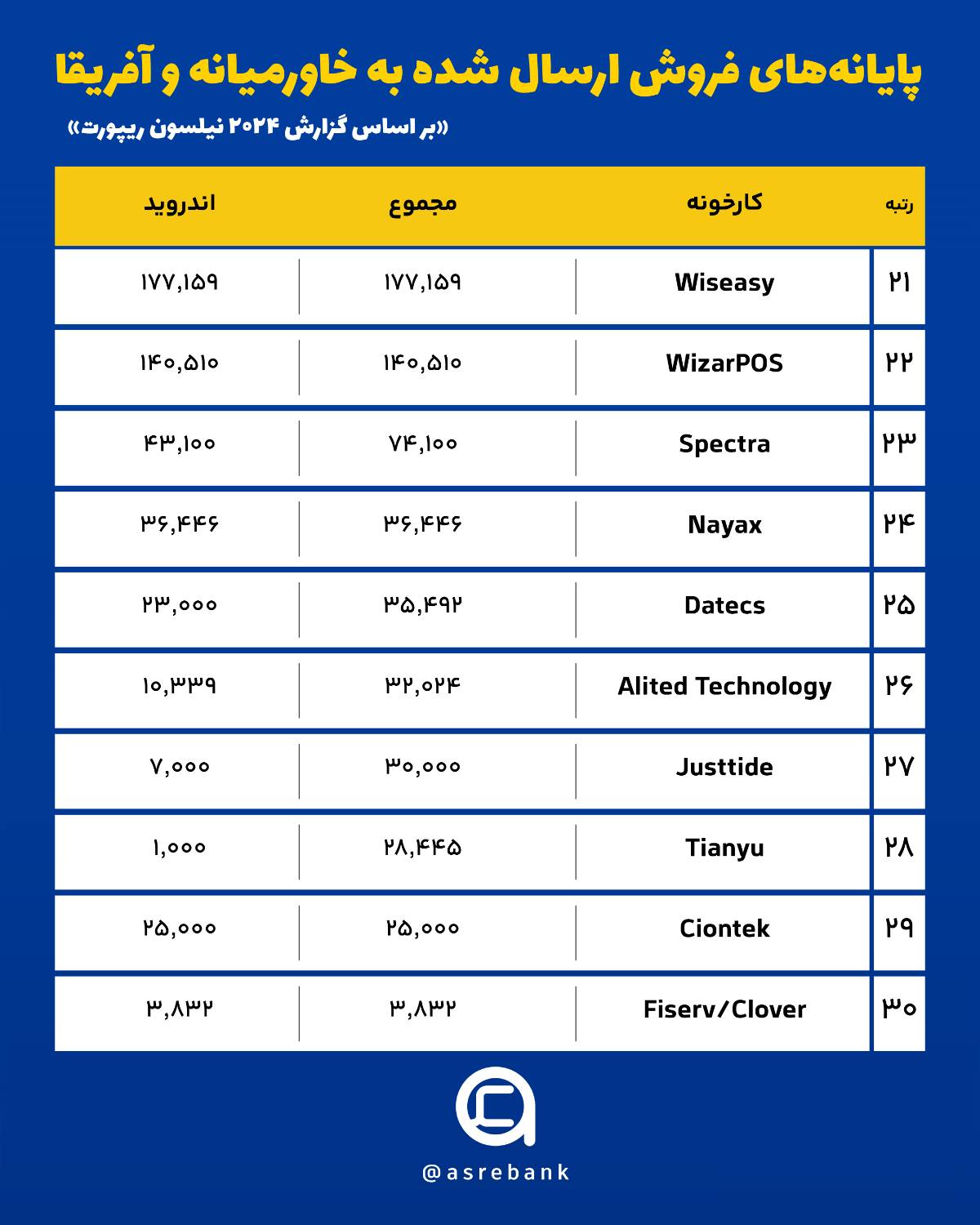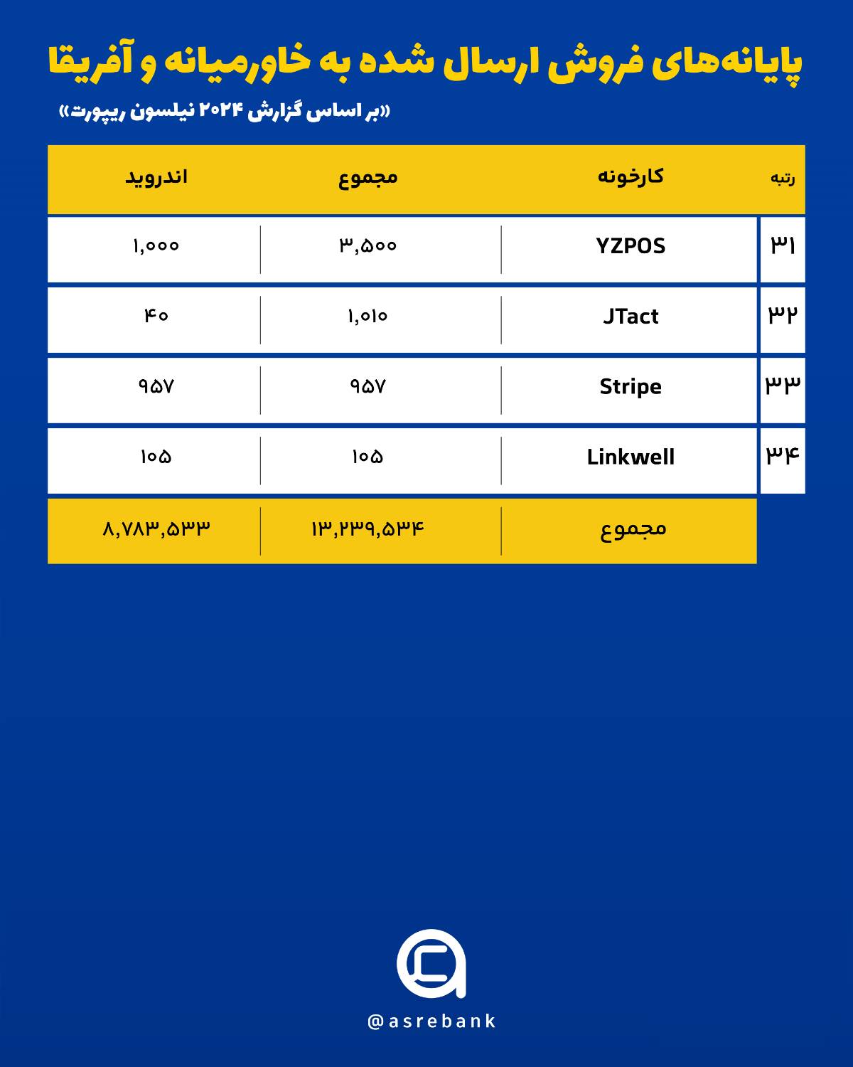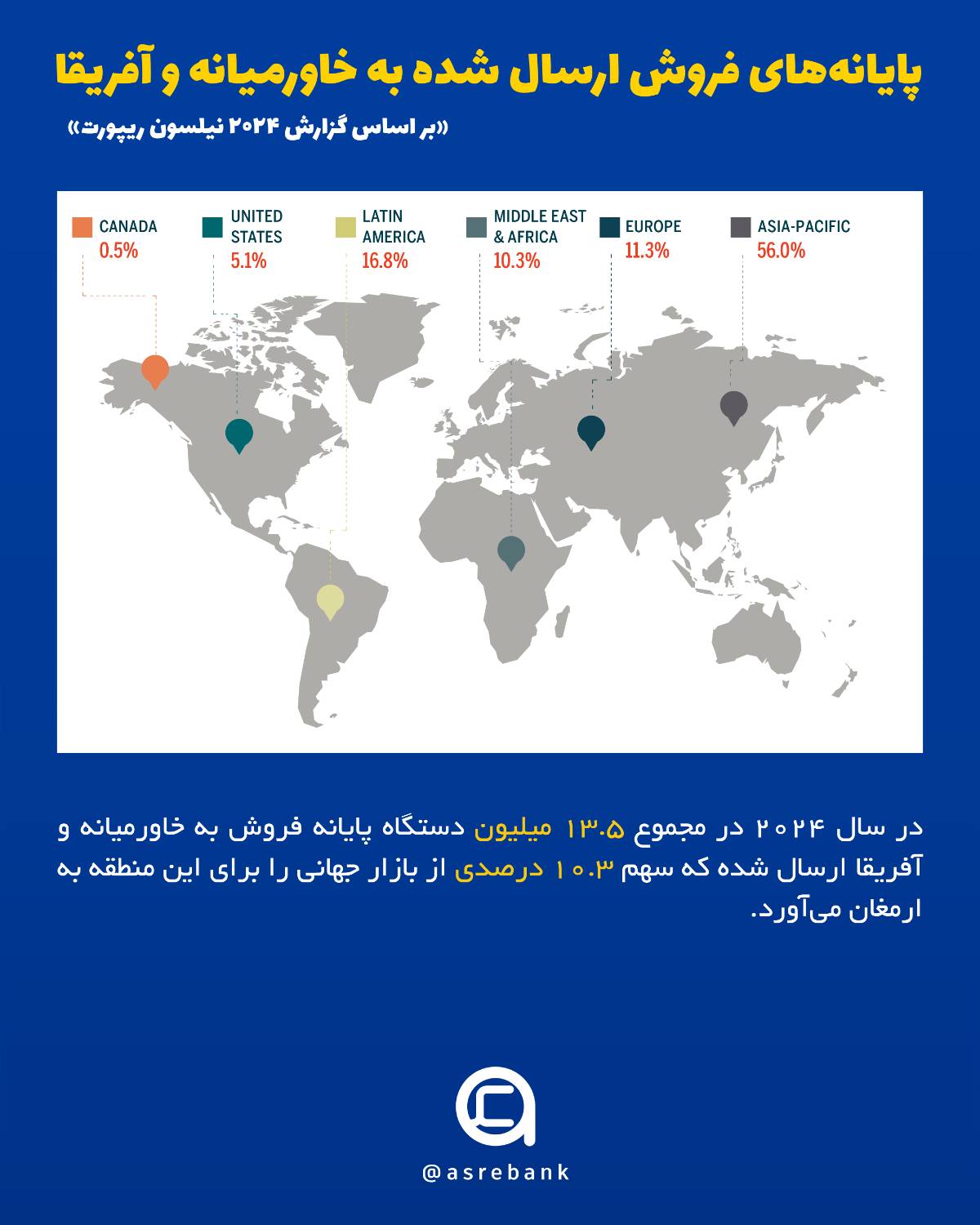 آماری از پایانههای فروش ارسال شده به خاورمیانه و آفریقا