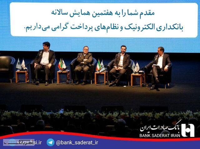 عصر بانک؛به گزارش روابط عمومی بانک صادرات ایران، هفتمین همایش «نظام های پرداخت و بانکداری الکترونیک» در روزهای دوم و سوم بهمن ماه سال جاری در مرکز همایش های برج میلاد توسط پژوهشکده پولی و بانکی بانک مرکزی با رویکرد «نوآوری، بازیگران جدید و کارایی در کسب و کار مالی» با حضور دکتر کرباسیان وزیر امور اقتصادی و دارایی، آذری جهرمی وزیر ارتباطات و فناوری اطلاعات، دکتر سیف رییس کل بانک مرکزی، دکتر دیواندری رییس پژوهشکده پولی و بانکی (دبیر همایش)، حکیمی معاون فناوری های نوین بانک مرکزی، جمعی از مدیران عامل و کارشناسان نظام بانکی و شرکت های ارائه دهنده خدمات الکترونیکی به بانک ها برگزار شد.