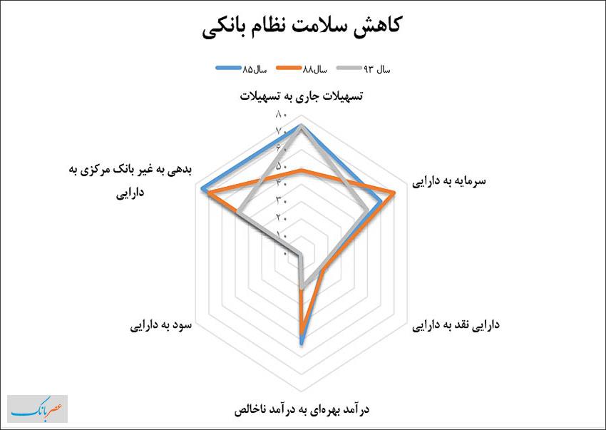 بررسیهای کارشناسان نشان میدهد پس از یک دوره بانکداری متمرکز که تا سال 1376 به طول انجامید، توسعه نامتوازن مالی طی سالهای 1376 تا 1386 سبب افول توسعه مالی کشور پس از سال 1386 شده است. عدم توسعه همه جانبه بازارهای مالی، زیرساختها و نهادهای تضمینکننده ثبات در این دوره از مهمترین دلایل تزلزل ثبات مالی کشور در نیمه دوم دهه 80 بود. محققان پولی و بانکی کشور در پژوهشی به بررسی وضعیت نظام بانکی کشور پرداختهاند. بر اساس یافتههای این پژوهش بسیاری از مشکلات کنونی نظام بانکی کشور ریشه در عدم تناسب و مدیریت صحیح توسعه مالی نیمه نخست دهه 80 دارد. کاهش درآمدهای دولت، رکود در بازار دارایی، افزایش نکول تسهیلات شبکه بانکی، مدیریت جریان نقدینگی در شبکه بانکی را تحت تاثیر قرارداد. ازسوی دیگر جنگ قیمتی بانکها هزینه تامین منابع شبکه بانکی کشور را افزایش داد. ازسوی دیگر به علت پدیدههایی نظیر افزایش حجم نقدینگی و انتفاع بانکها از انبساط حجم نقدینگی به جای جریان حاصل از بازپرداخت مطالبات، مدیریت ریسک و روند پایش متناسب نهاد ناظر، در شبکه بانکی کشور به خوبی رخ نداد. بررسیها نشان میدهد با انباشت ضرر از ناحیه داراییهای بانکها، افزایش ریسک داراییهای بانکها، گرفتن ذخیره برای مطالبات مشکوکالوصول، بالا رفتن هزینه تامین مالی و انجماد داراییها در بخشهای غیرتسهیلاتی، شاخصهای سنجش سلامتی نظام بانکی در سالهای اخیر، روند کاهشی مستمری را تجربه کرده است؛ بهگونهایکه در شرایط کنونی در مقایسه با میانگین جهانی در وضعیت مناسبی قرار ندارد.