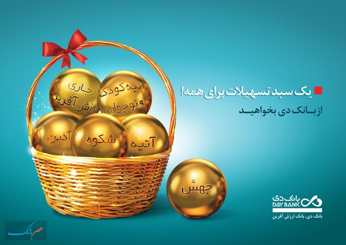 عصر بانک؛به گزارش اداره کل روابط عمومی بانک دی، این طرح که با عنوان "سبد ارزش آفرین" در خدمت مشتریان قرار گرفته است، شامل طرح‌های حساب جاری، جهش، شکوه، آذین، نگین، سرمایه‌گذاری‌های آتیه و آتیه کودک و نوجوان است.