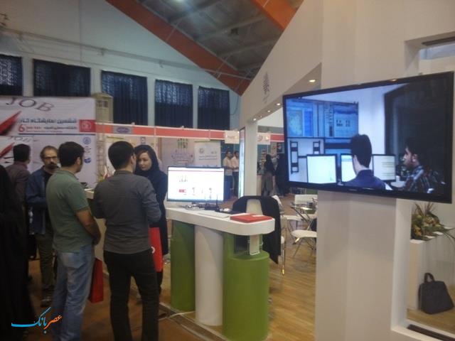 عصر بانک؛غرفه هایی که در بیرون از در نمایشگاه هستند تنها علامتی است که شما را به ورود به سالن اصلی نمایشگاه کار هدایت می کند.