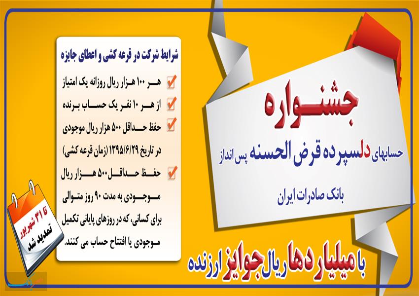 برای بهره مندی از میلیاردها ریال جوایز ارزنده بانک صادرات ایران تا پایان شهریور مهلت باقی است